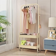 11. 모던스탠드행거 트롤리 선반 카트 이동식 바퀴 간이 옷장 옷걸이, 베이지