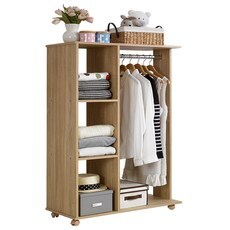 7. 프리메이드 이동식 수납 행거 와이드형 드레스룸 행거 스탠드옷걸이, 와이드형 오크