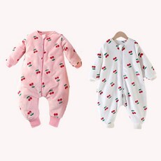 5. 조이멀티 여아용 뉴 보들보들 체리 레빗 수면 우주복 2종 세트